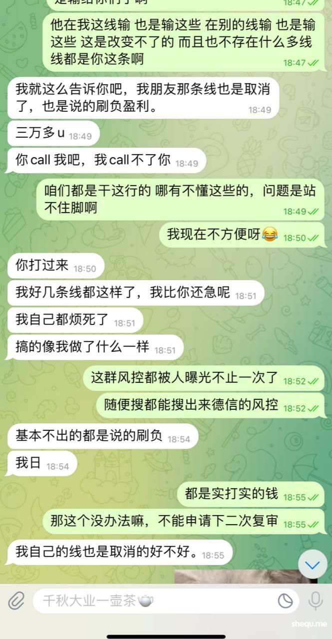 说风控审核不过,原因是多线刷负盈利 ,笑死,德信都是内部人推的,鸭脖的都知道,世界杯  欧洲杯,内部员工都在玩,所以代理也多,现在是环境原因杀完员工杀会员,杀完会员杀代理了嘛? 线都是招商的,不限IP 不限这那的,现在就是明着黑了吗?